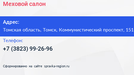 Меховой салон по адресу Томская область, Томск, Коммунистический проспект, 151 в дальнейшем Организация, размещена в следующих категориях:
