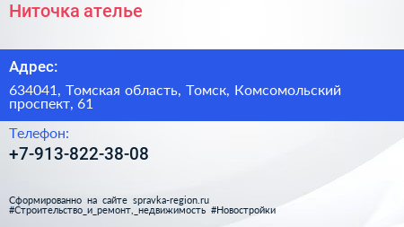 Ниточка, ателье по адресу 634041, Томская область, Томск, Комсомольский проспект, 61 в дальнейшем Организация, размещена в следующих категориях: