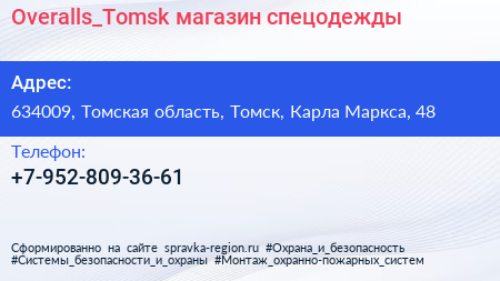 Overalls_Tomsk, магазин спецодежды по адресу 634009, Томская область, Томск, Карла Маркса, 48 в дальнейшем Организация, размещена в следующих категориях: