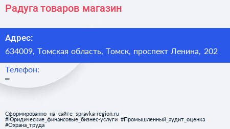 Радуга товаров, магазин по адресу 634009, Томская область, Томск, проспект Ленина, 202 в дальнейшем Организация, размещена в следующих категориях: