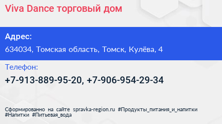 Viva Dance, торговый дом по адресу 634034, Томская область, Томск, Кулёва, 4 в дальнейшем Организация, размещена в следующих категориях: