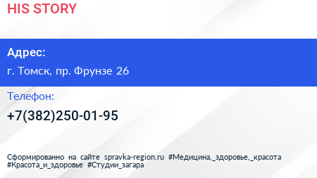HIS STORY по адресу г. Томск, пр. Фрунзе 26 в дальнейшем Организация, размещена в следующих категориях: