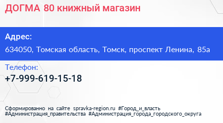 ДОГМА 80, книжный магазин по адресу 634050, Томская область, Томск, проспект Ленина, 85а в дальнейшем Организация, размещена в следующих категориях: