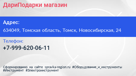 ДариПодарки, магазин по адресу 634049, Томская область, Томск, Новосибирская, 24 в дальнейшем Организация, размещена в следующих категориях: