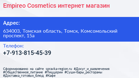 Empireo Cosmetics, интернет-магазин по адресу 634003, Томская область, Томск, Комсомольский проспект, 15а в дальнейшем Организация, размещена в следующих категориях: