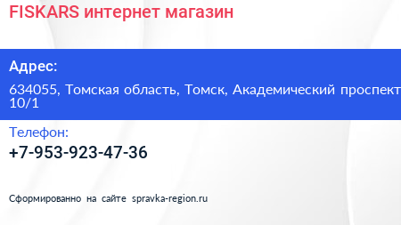 FISKARS, интернет-магазин по адресу 634055, Томская область, Томск, Академический проспект, 10/1 в дальнейшем Организация, размещена в следующих категориях: