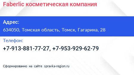 Faberlic, косметическая компания по адресу 634050, Томская область, Томск, Гагарина, 28 в дальнейшем Организация, размещена в следующих категориях: