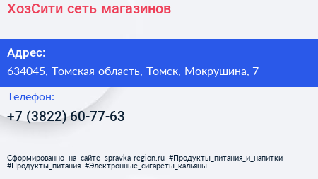 ХозСити, сеть магазинов по адресу 634045, Томская область, Томск, Мокрушина, 7 в дальнейшем Организация, размещена в следующих категориях: