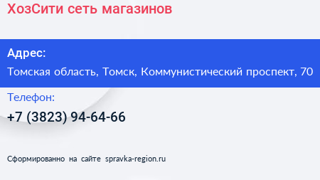 ХозСити, сеть магазинов по адресу Томская область, Томск, Коммунистический проспект, 70 в дальнейшем Организация, размещена в следующих категориях: