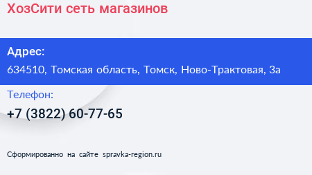 ХозСити, сеть магазинов по адресу 634510, Томская область, Томск, Ново-Трактовая, 3а в дальнейшем Организация, размещена в следующих категориях: