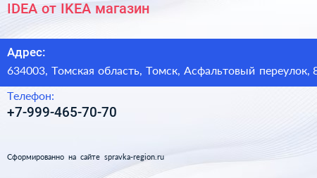 IDEA от IKEA, магазин по адресу 634003, Томская область, Томск, Асфальтовый переулок, 8 в дальнейшем Организация, размещена в следующих категориях: