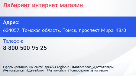 Лабиринт, интернет-магазин по адресу 634057, Томская область, Томск, проспект Мира, 48/3 в дальнейшем Организация, размещена в следующих категориях: