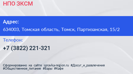 НПО ЗКСМ по адресу 634003, Томская область, Томск, Партизанская, 15/2 в дальнейшем Организация, размещена в следующих категориях: