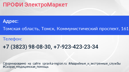 ПРОФИ ЭлектроМаркет по адресу Томская область, Томск, Коммунистический проспект, 161 в дальнейшем Организация, размещена в следующих категориях: