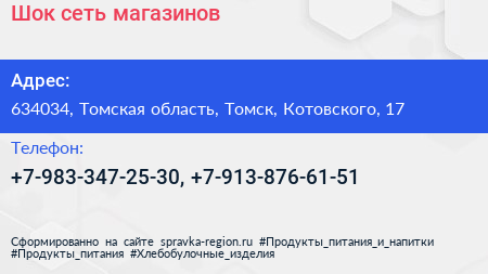 Шок, сеть магазинов по адресу 634034, Томская область, Томск, Котовского, 17 в дальнейшем Организация, размещена в следующих категориях: