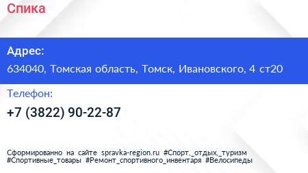 Спика по адресу 634040, Томская область, Томск, Ивановского, 4 ст20 в дальнейшем Организация, размещена в следующих категориях: