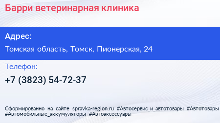 Барри, ветеринарная клиника по адресу Томская область, Томск, Пионерская, 24 в дальнейшем Организация, размещена в следующих категориях: