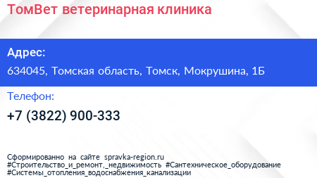 ТомВет, ветеринарная клиника по адресу 634045, Томская область, Томск, Мокрушина, 1Б в дальнейшем Организация, размещена в следующих категориях: