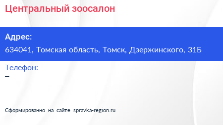 Центральный, зоосалон по адресу 634041, Томская область, Томск, Дзержинского, 31Б в дальнейшем Организация, размещена в следующих категориях: