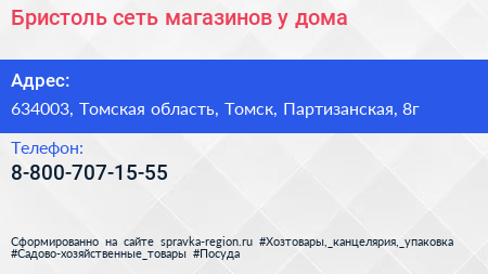 Бристоль, сеть магазинов у дома по адресу 634003, Томская область, Томск, Партизанская, 8г в дальнейшем Организация, размещена в следующих категориях: