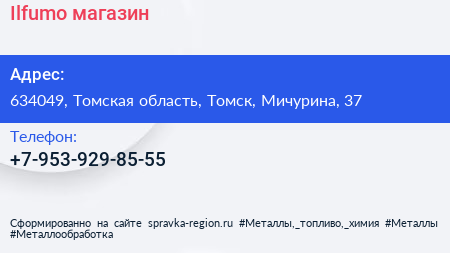 Ilfumo, магазин по адресу 634049, Томская область, Томск, Мичурина, 37 в дальнейшем Организация, размещена в следующих категориях: