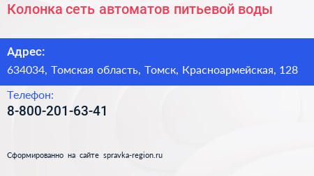 Колонка, сеть автоматов питьевой воды по адресу 634034, Томская область, Томск, Красноармейская, 128 в дальнейшем Организация, размещена в следующих категориях:
