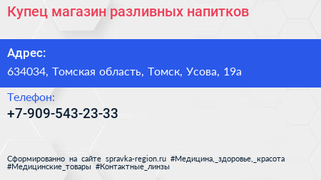 Купец, магазин разливных напитков по адресу 634034, Томская область, Томск, Усова, 19а в дальнейшем Организация, размещена в следующих категориях: