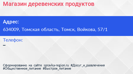 Магазин деревенских продуктов по адресу 634009, Томская область, Томск, Войкова, 57/1 в дальнейшем Организация, размещена в следующих категориях: