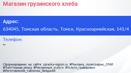 Магазин грузинского хлеба по адресу 634045, Томская область, Томск, Красноармейская, 141/4 в дальнейшем Организация, размещена в следующих категориях: