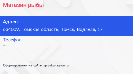 Магазин рыбы по адресу 634009, Томская область, Томск, Водяная, 17 в дальнейшем Организация, размещена в следующих категориях: