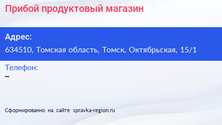 Прибой, продуктовый магазин по адресу 634510, Томская область, Томск, Октябрьская, 15/1 в дальнейшем Организация, размещена в следующих категориях: