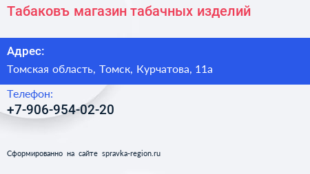 Табаковъ, магазин табачных изделий по адресу Томская область, Томск, Курчатова, 11а в дальнейшем Организация, размещена в следующих категориях: