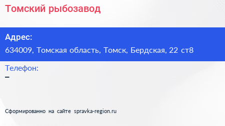 Томский рыбозавод по адресу 634009, Томская область, Томск, Бердская, 22 ст8 в дальнейшем Организация, размещена в следующих категориях: