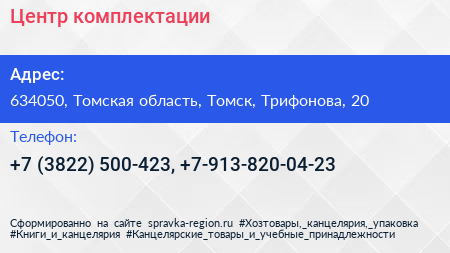 Центр комплектации по адресу 634050, Томская область, Томск, Трифонова, 20 в дальнейшем Организация, размещена в следующих категориях: