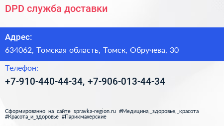 DPD, служба доставки по адресу 634062, Томская область, Томск, Обручева, 30 в дальнейшем Организация, размещена в следующих категориях: