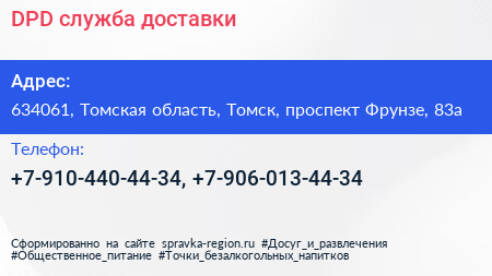 DPD, служба доставки по адресу 634061, Томская область, Томск, проспект Фрунзе, 83а в дальнейшем Организация, размещена в следующих категориях:
