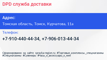 DPD, служба доставки по адресу Томская область, Томск, Курчатова, 11а в дальнейшем Организация, размещена в следующих категориях: