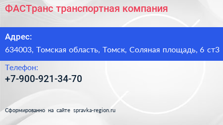 ФАСТранс, транспортная компания по адресу 634003, Томская область, Томск, Соляная площадь, 6 ст3 в дальнейшем Организация, размещена в следующих категориях: