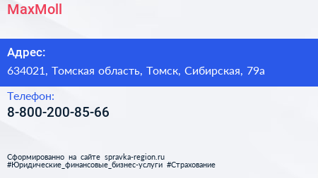 MaxMoll по адресу 634021, Томская область, Томск, Сибирская, 79а в дальнейшем Организация, размещена в следующих категориях: