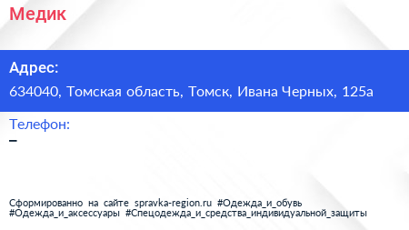 Медик по адресу 634040, Томская область, Томск, Ивана Черных, 125а в дальнейшем Организация, размещена в следующих категориях: