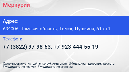 Меркурий по адресу 634006, Томская область, Томск, Пушкина, 61 ст1 в дальнейшем Организация, размещена в следующих категориях: