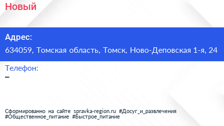 Новый по адресу 634059, Томская область, Томск, Ново-Деповская 1-я, 24 в дальнейшем Организация, размещена в следующих категориях: