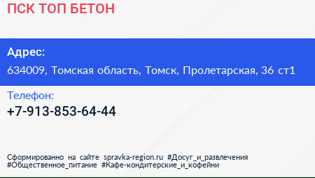 ПСК ТОП БЕТОН по адресу 634009, Томская область, Томск, Пролетарская, 36 ст1 в дальнейшем Организация, размещена в следующих категориях: