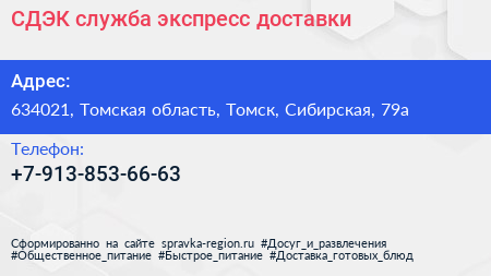 СДЭК, служба экспресс-доставки по адресу 634021, Томская область, Томск, Сибирская, 79а в дальнейшем Организация, размещена в следующих категориях: