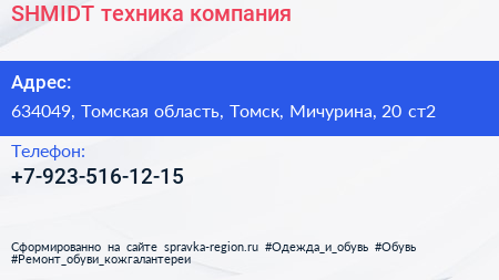 SHMIDT-техника, компания по адресу 634049, Томская область, Томск, Мичурина, 20 ст2 в дальнейшем Организация, размещена в следующих категориях: