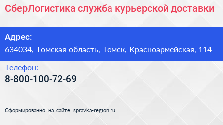 СберЛогистика, служба курьерской доставки по адресу 634034, Томская область, Томск, Красноармейская, 114 в дальнейшем Организация, размещена в следующих категориях: