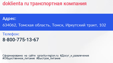 doklienta.ru, транспортная компания по адресу 634062, Томская область, Томск, Иркутский тракт, 102 в дальнейшем Организация, размещена в следующих категориях: