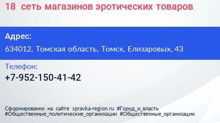18+, сеть магазинов эротических товаров по адресу 634012, Томская область, Томск, Елизаровых, 43 в дальнейшем Организация, размещена в следующих категориях: