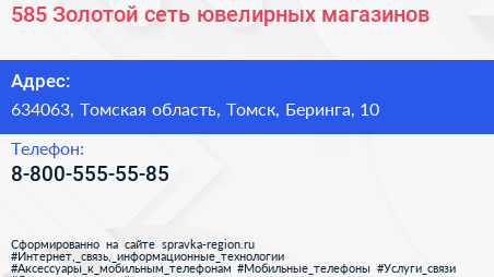 585 Золотой, сеть ювелирных магазинов по адресу 634063, Томская область, Томск, Беринга, 10 в дальнейшем Организация, размещена в следующих категориях: