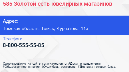 585 Золотой, сеть ювелирных магазинов по адресу Томская область, Томск, Курчатова, 11а в дальнейшем Организация, размещена в следующих категориях: